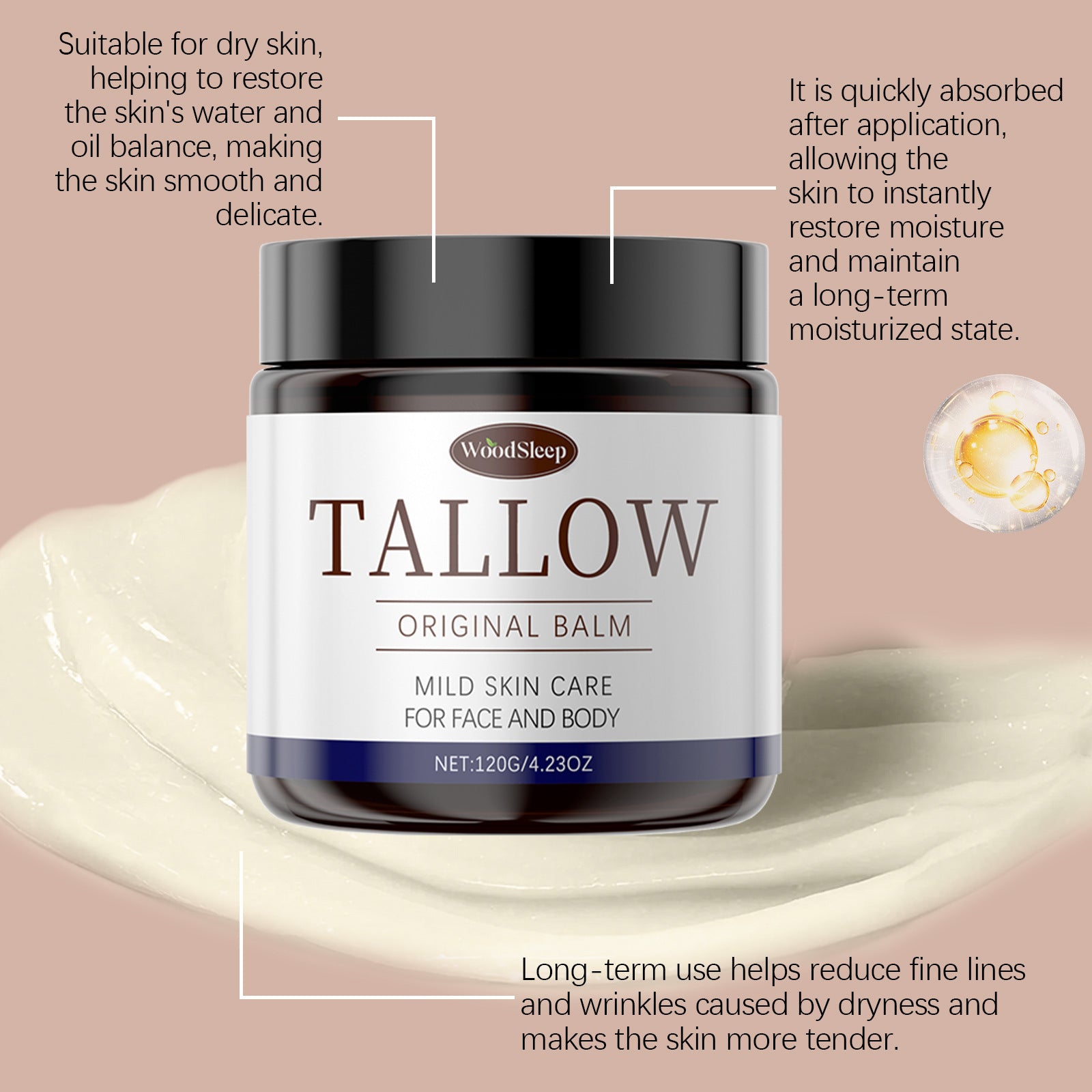Natural Ingredients: Contains tallow and honey for deep moisturizing and skin nourishment.