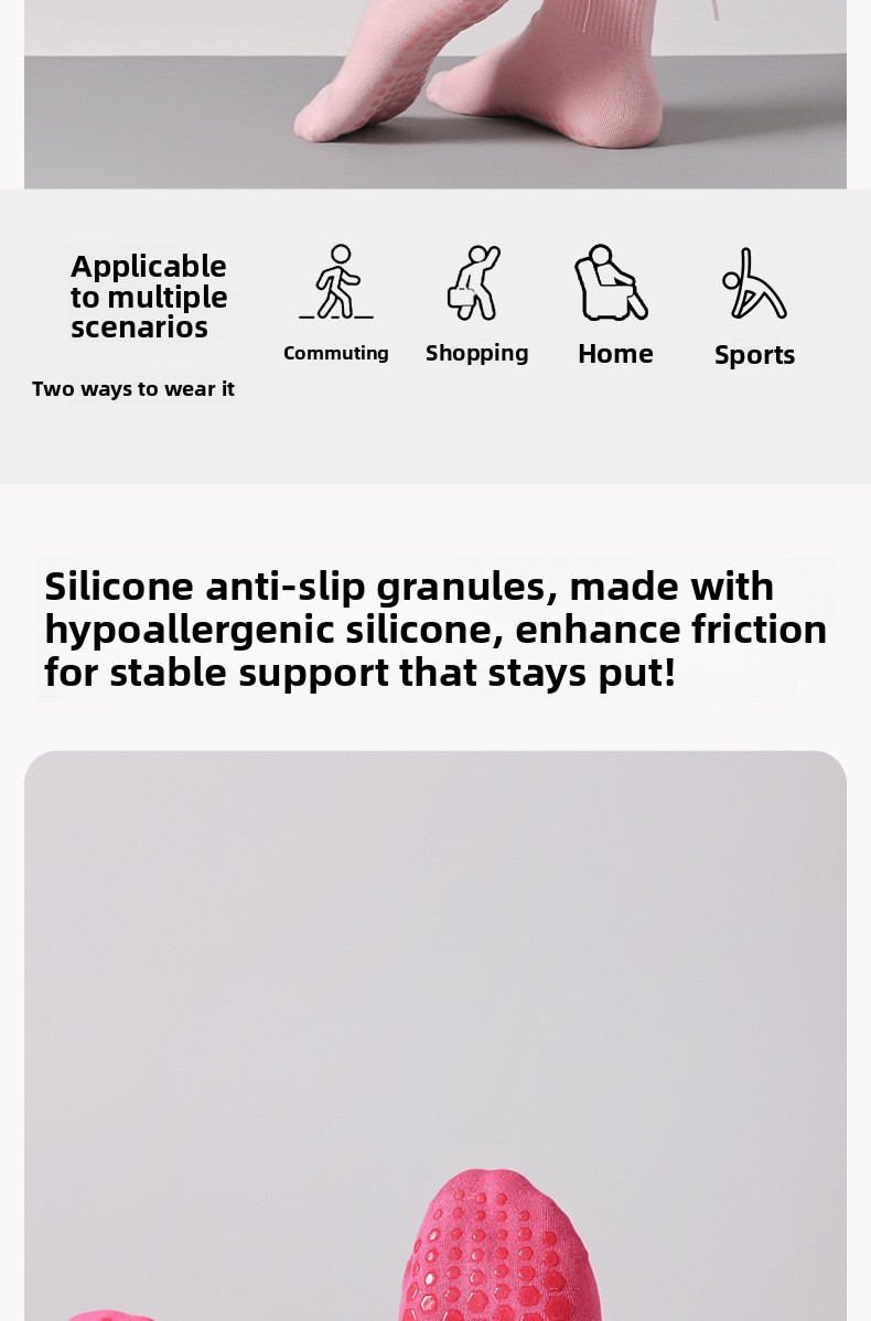 Non-slip Grip: Silicone dots on sole for enhanced traction during yoga and Pilates.