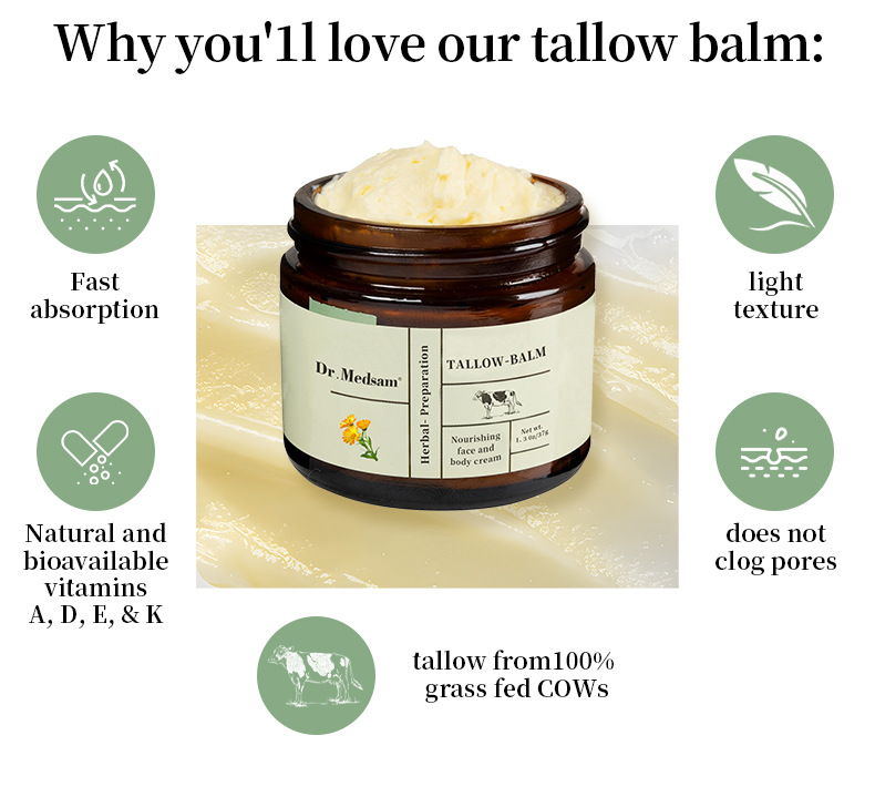 Natural Ingredients: Hand-whipped tallow cream enriched with Manuka honey and grass-fed tallow for skin nourishment.