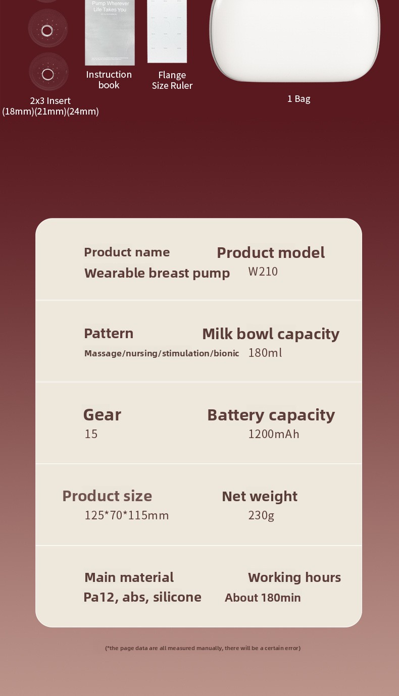 Type: Wearable hands-free electric breast pump (without catheter)